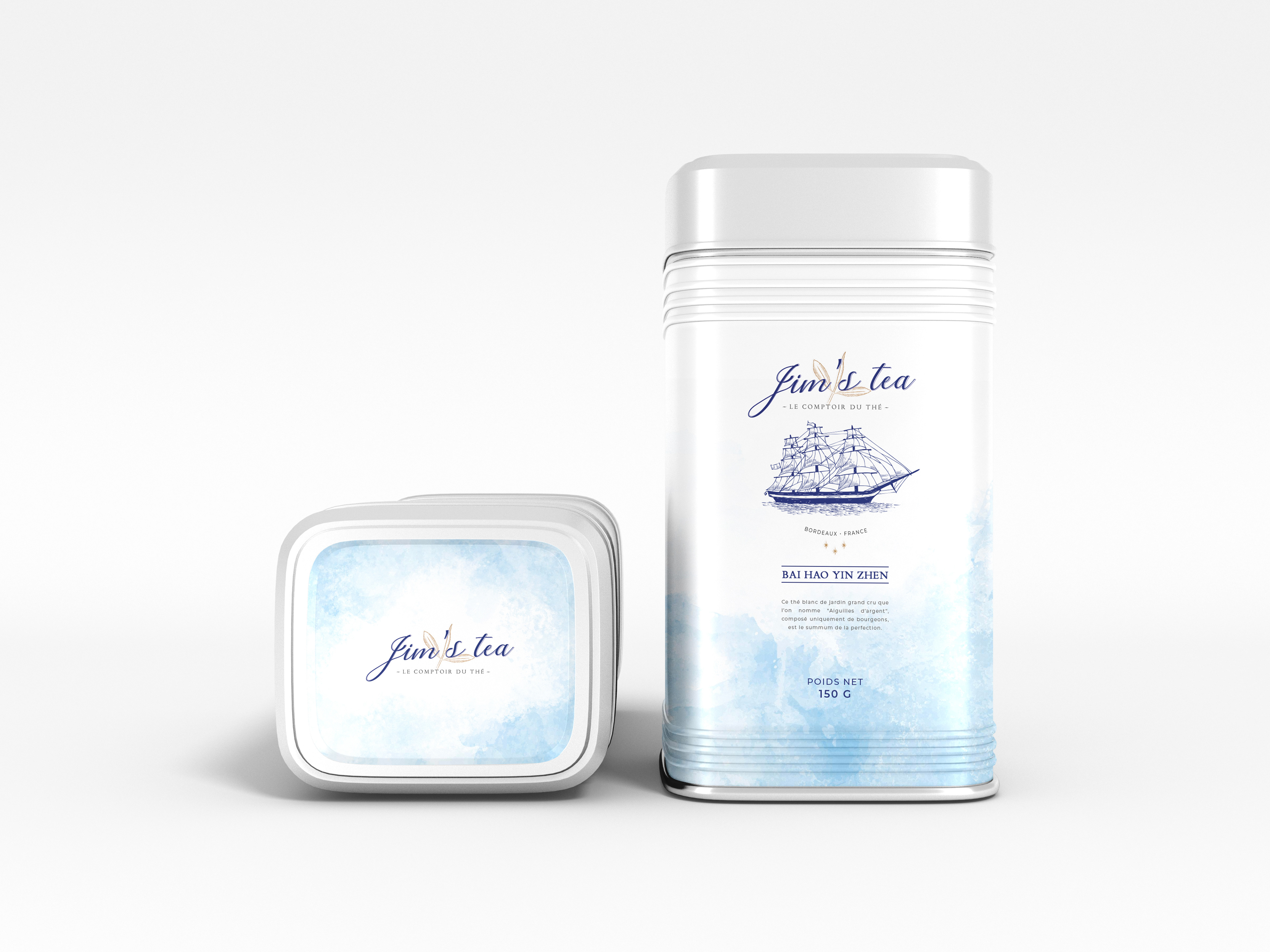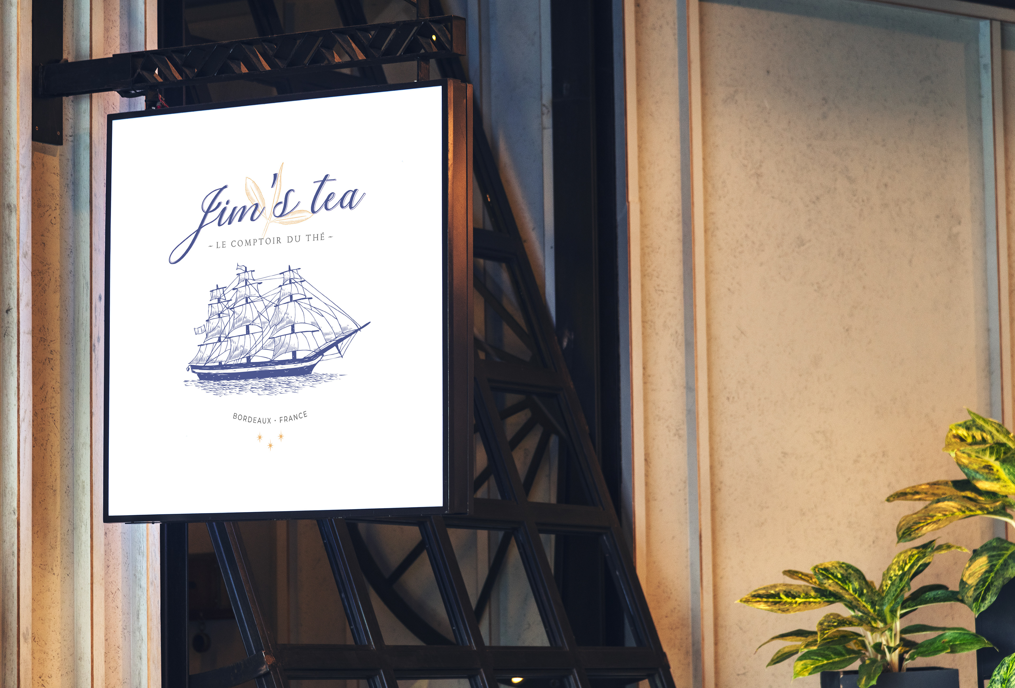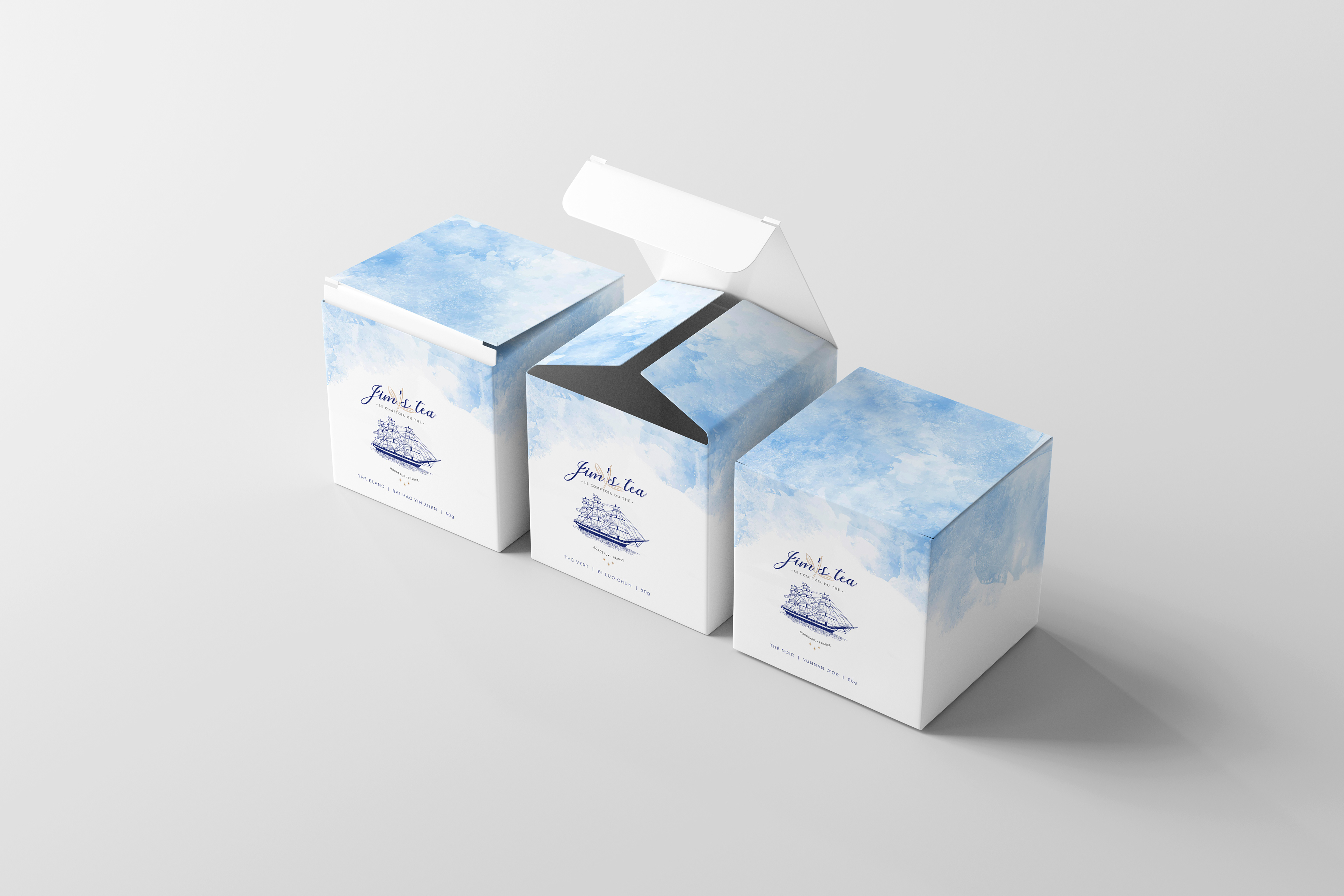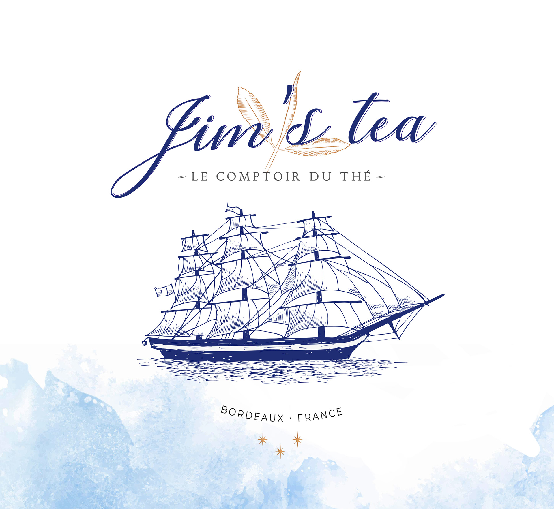 "Jim's Tea", maison de thés à Andernos-Les-Bains I Création logo, packaging, sacs, devanture.