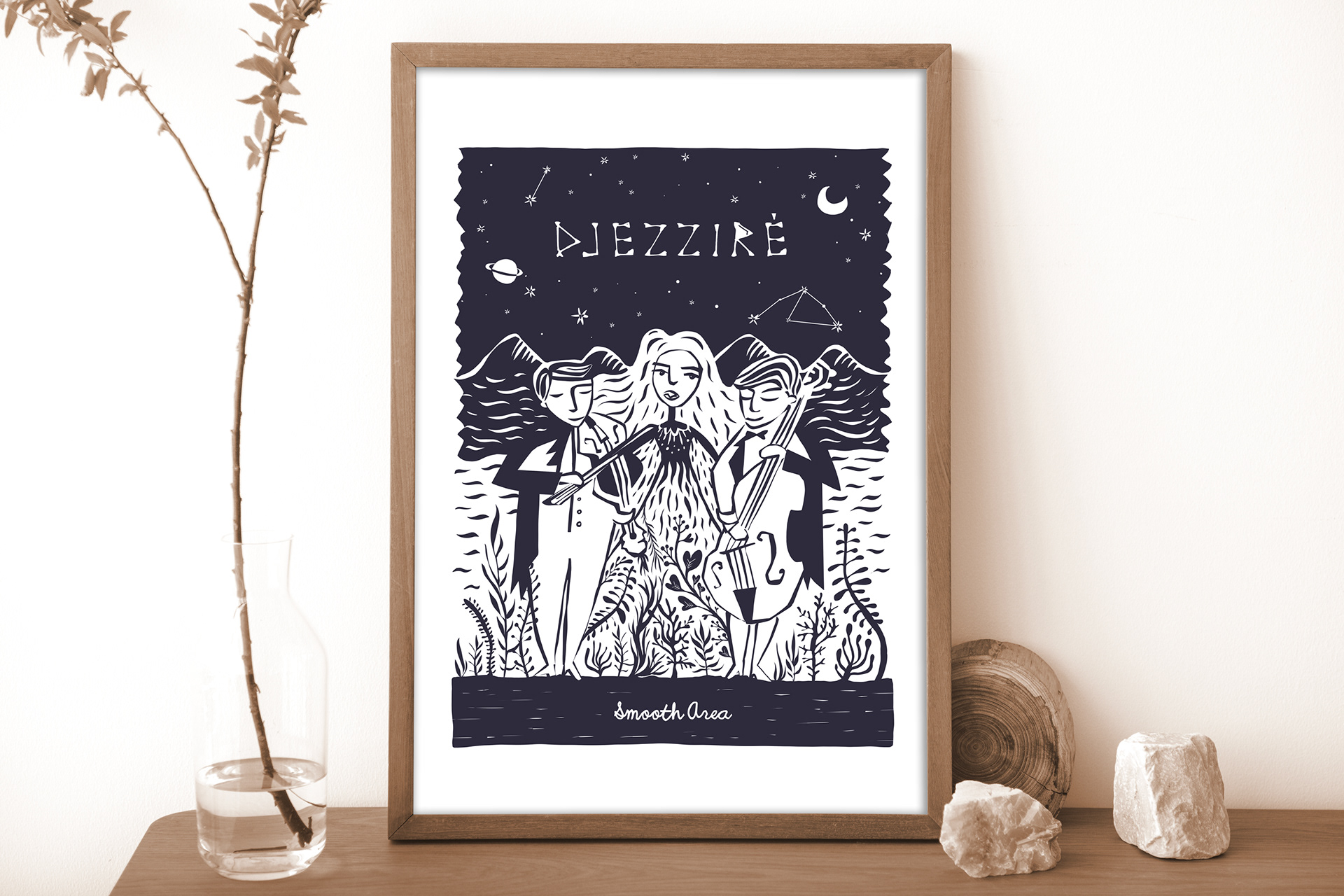 "Djezziré", trio Jazz-Lyrico-Blues à Marseille I Création illustration et typographie.