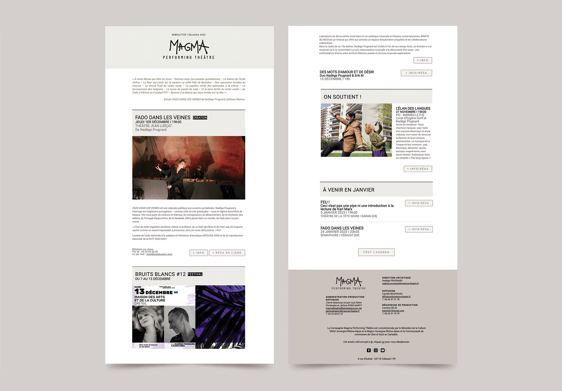 "Magma Performing Théâtre", compagnie de théâtre à Marseille I Conception newsletter, création animation Gif.
